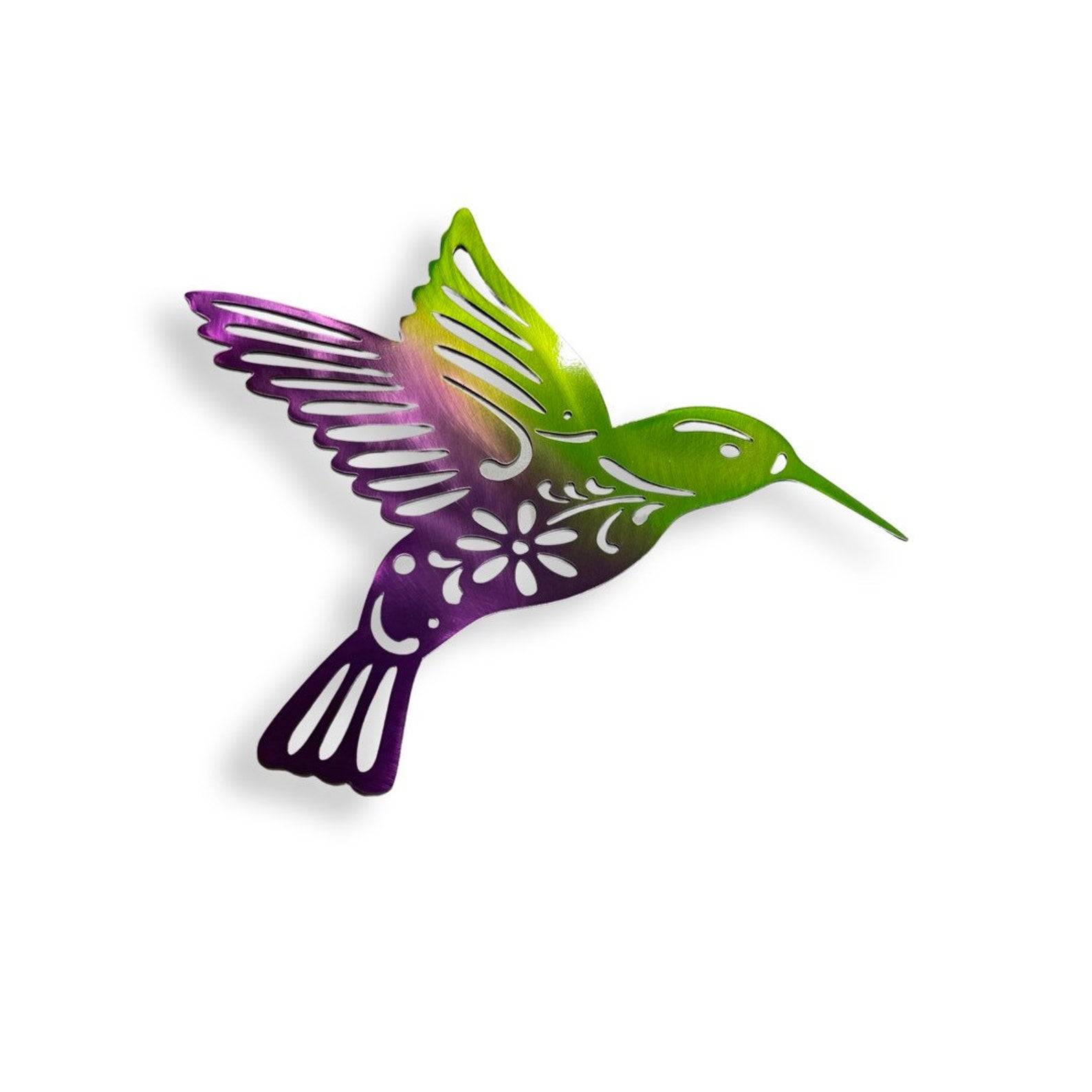 Bring a touch of nature’s beauty to your home with this Multicolored Hummingbird Metal Wall Hanging. Designed with a stunning ombre finish, this 4"x4" handcrafted piece features a vibrant blend of colors, making it the perfect springtime garden decor or a cheerful addition to any space.